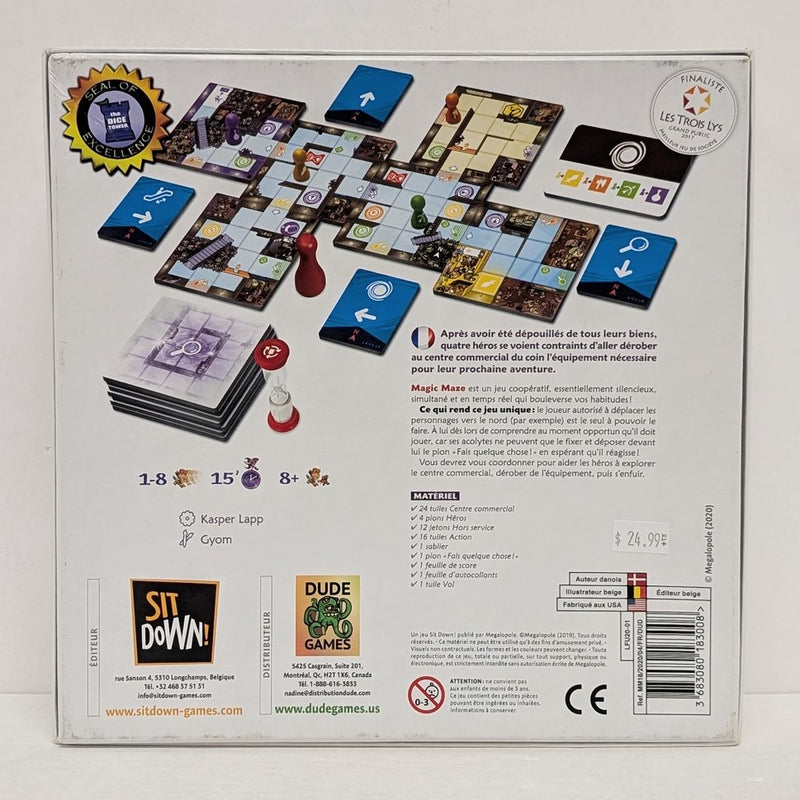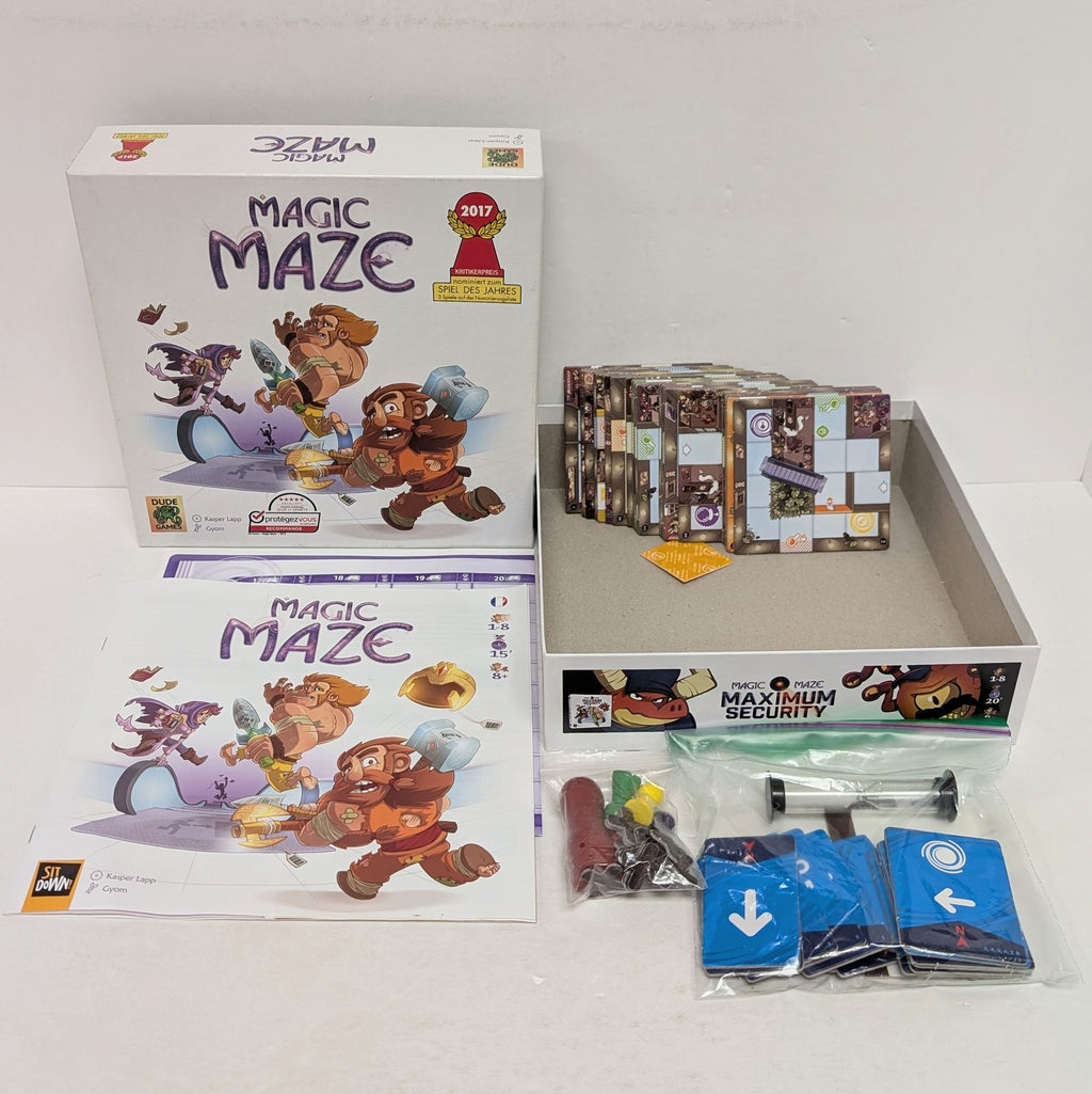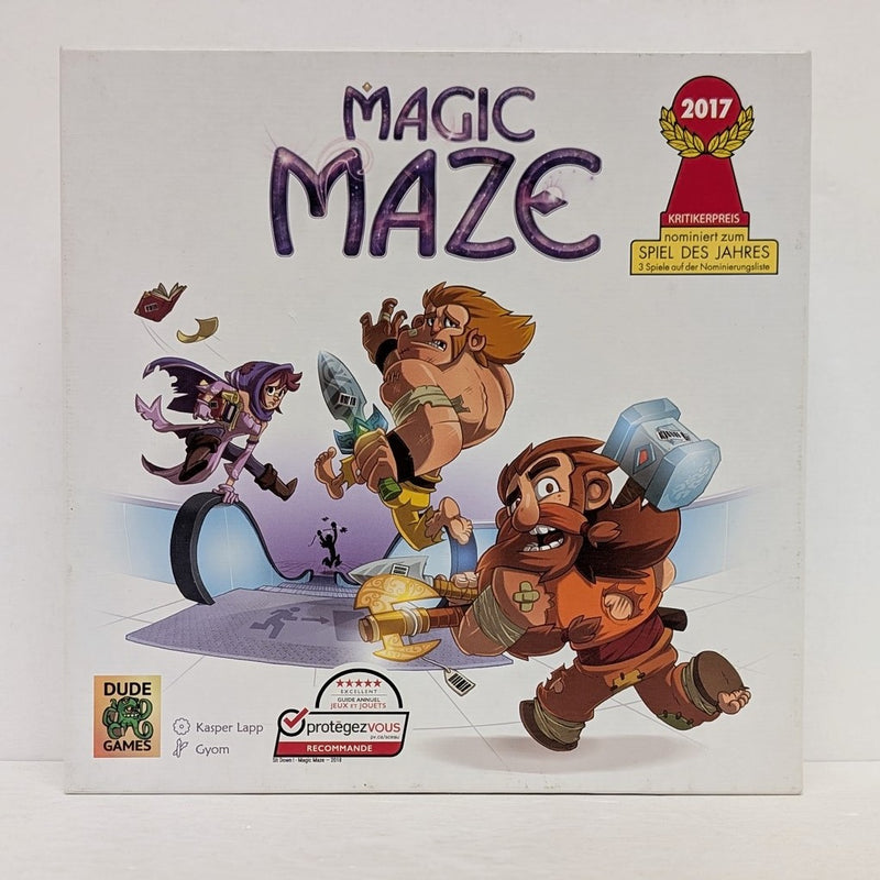 After being stripped of all their possessions, a mage, a warrior, an elf, and a dwarf are forced to go rob the local Magic Maze shopping mall for all the equipment necessary for their next adventure. They agree to map out the labyrinth in its entirety first, then find each individual’s favorite store, and then locate the exit. In order to evade the surveillance of the guards who eyed their arrival suspiciously, all four will pull off their heists simultaneously, then dash to the exit. That's the plan anyway…but can they pull it off?