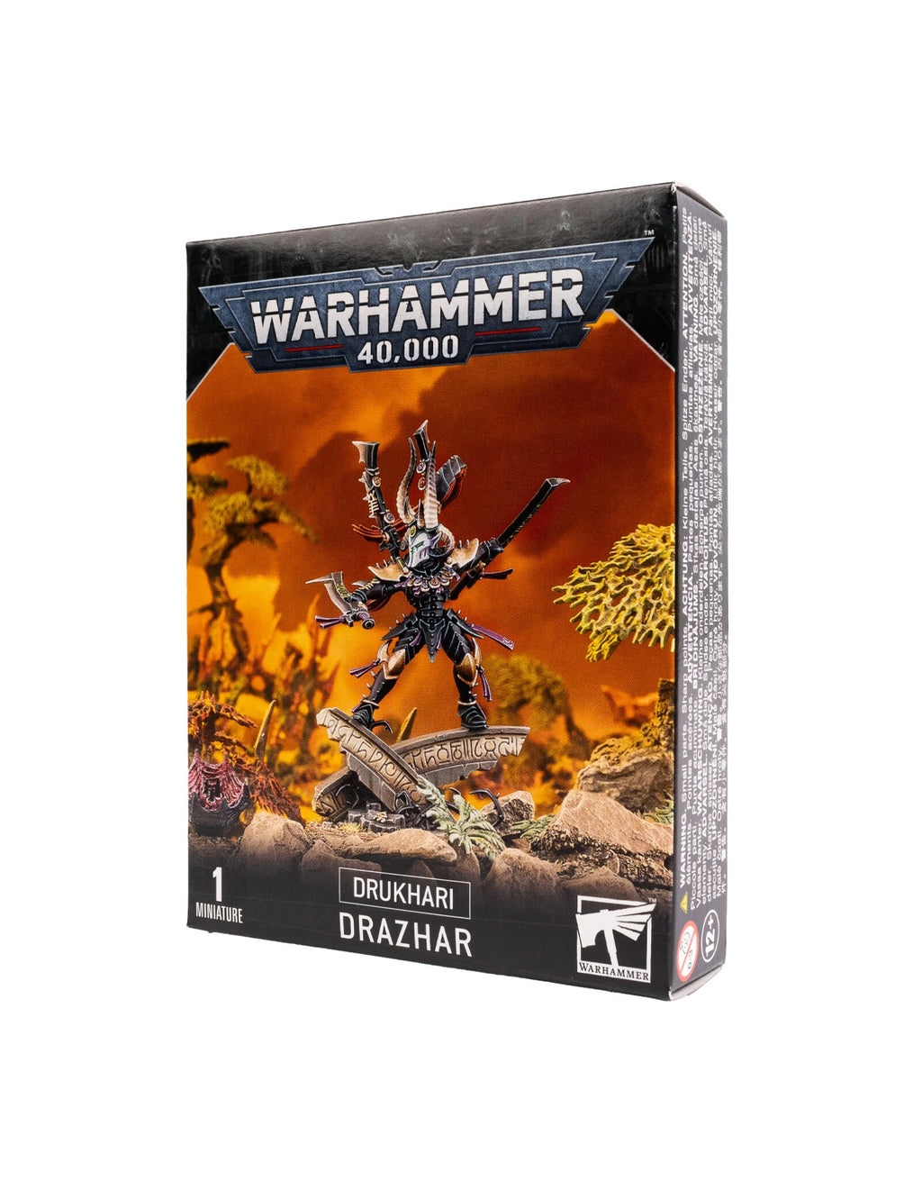 This kit is supplied in 16 plastic components and comes with a 40mm round base. Rules for using Drazhar in games of Warhammer 40,000 can be found in Psychic Awakening: Phoenix Rising.