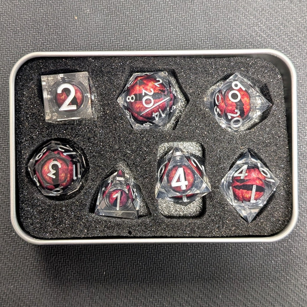 Ensemble de 7 dés à œil à noyau liquide en résine - Transparent/Rouge