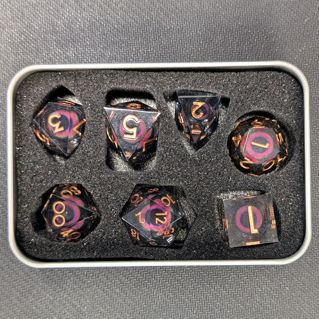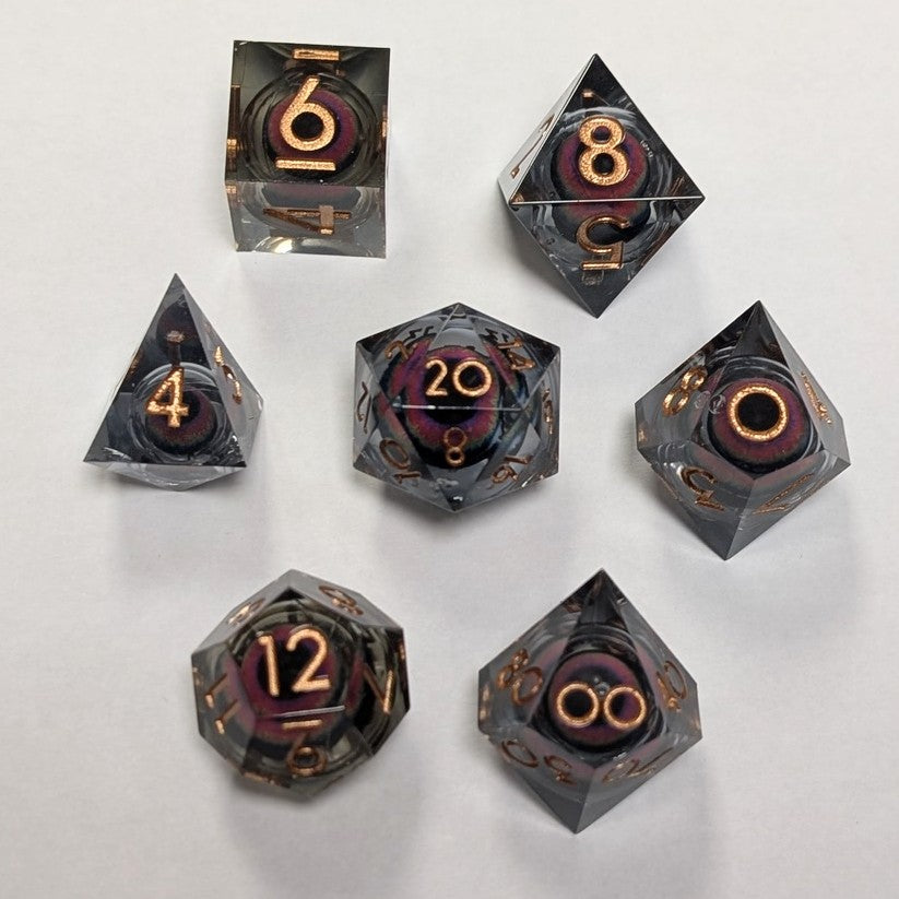 Ensemble de 7 dés à œil à noyau liquide en résine - Gris/Arc-en-ciel