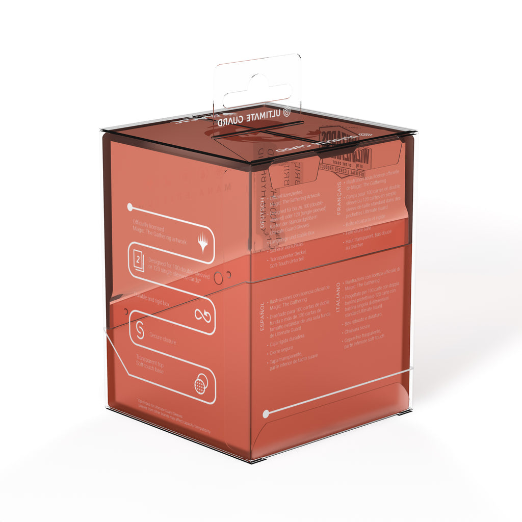 L'étui Boulder 100+ Hybrid d'Ultimate Guard combine le couvercle entièrement transparent du Boulder Clear avec une base douce au toucher, dans le style du Boulder original. Cet étui officiel Magic: The Gathering est facile à ouvrir et offre une protection optimale à vos cartes grâce à sa coque robuste et sa fermeture sécurisée. Le Boulder 100+ Hybrid peut contenir jusqu'à 100 cartes dans un double étui et convient à tous les formats de Magic: The Gathering, tels que Commander, Standard et Modern.