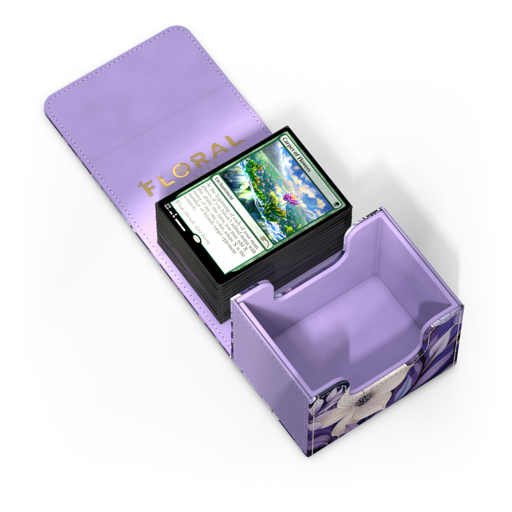 La célèbre série Sidewinder « Lieux floraux » d'Ultimate Guard est de retour avec six nouveaux modèles ! Et pour la première fois, des boîtes de rangement pour plus de 133 cartes sont disponibles, idéales pour le format Commander de Magic : The Gathering ! Nos boîtes Sidewinder sont dotées d'un revêtement extérieur résistant en Xenoskin, d'une doublure intérieure en microfibre de qualité et d'une fermeture magnétique robuste. Selon le modèle, elles peuvent contenir 100 ou 133 cartes sous double protection Ultimate Guard, compatibles avec des jeux de cartes à collectionner comme Magic : The Gathering et Pokémon.