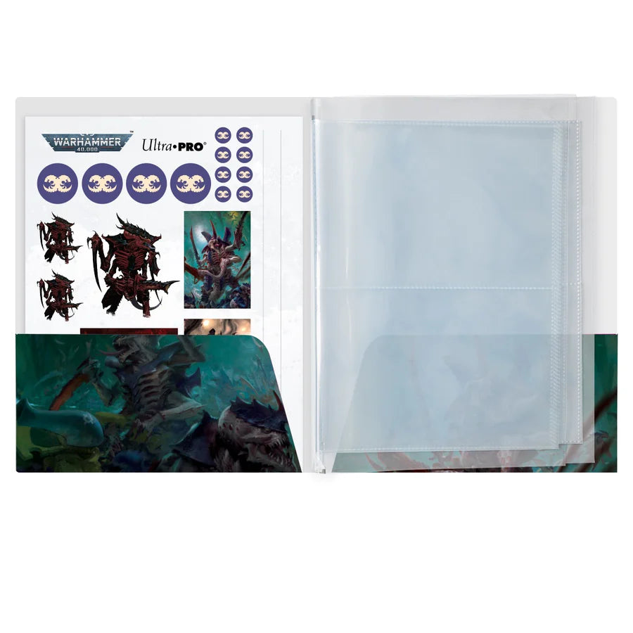 Dans les ténèbres impitoyables du lointain futur, il n'y a que la guerre. Préparez-vous au combat avec les accessoires pour Warhammer 40,000 ! Organisez et rangez vos notes, fiches et fiches techniques dans ce porte-fiches Tyranides, orné d'un symbole Tyranide rouge métallisé et de l'emblème de la faction Tyranide. À l'intérieur, vous trouverez dix pages recto-verso à quatre pochettes, adaptées aux fiches techniques de la 10e édition, ainsi que deux pages imprimées à une pochette pour vos notes et plans d'armée (format A4 ou 21,6 x 27,9 cm). Chaque pochette noire en relief est fabriquée en toile sans acide et sans PVC pour protéger vos fiches, et s'ouvre latéralement pour un accès facile. Utilisez la planche d'autocollants effaçables à sec incluse pour personnaliser et organiser vos armées !