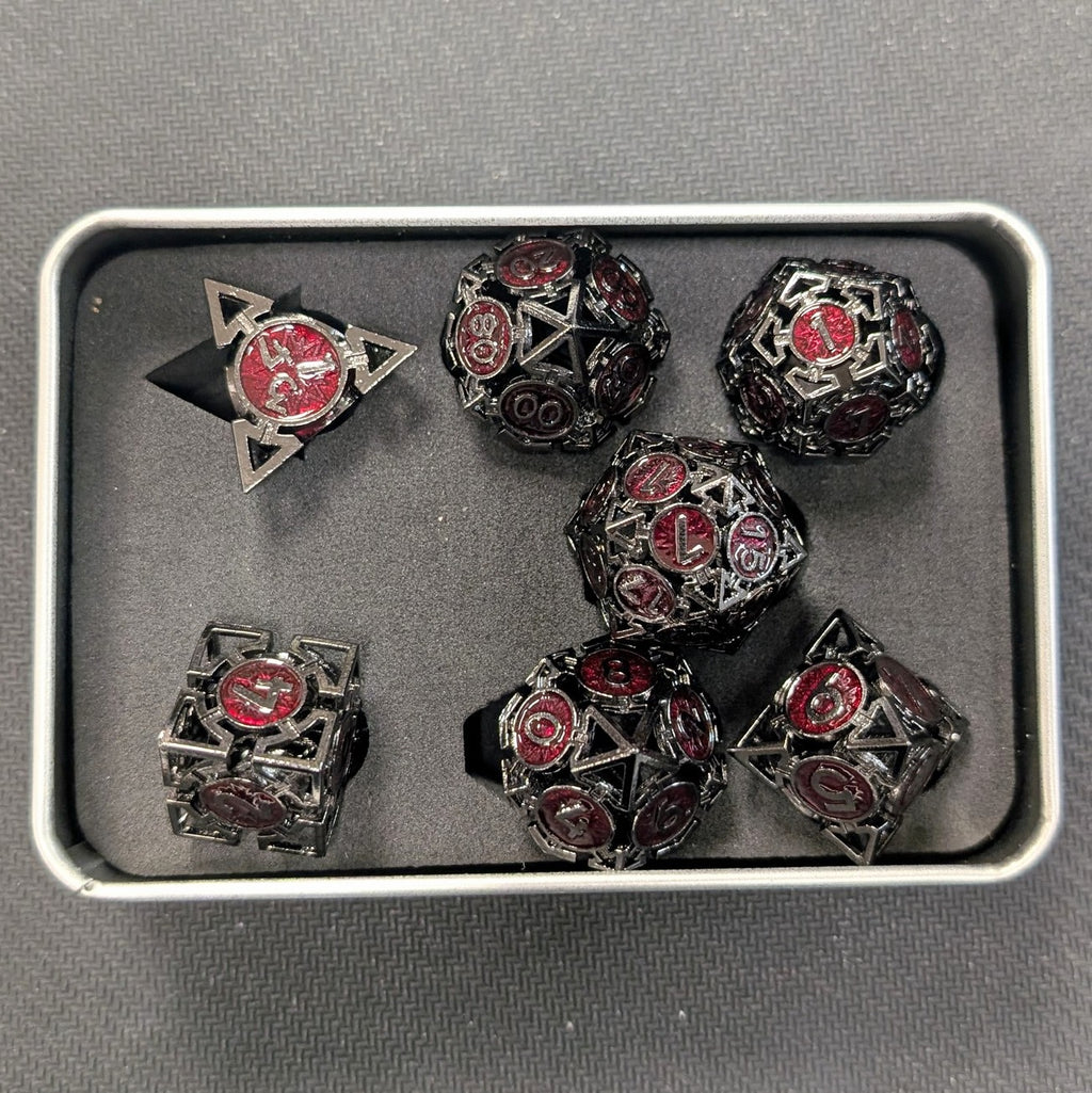 Ensemble de 7 dés creux en métal - Noir/Rouge