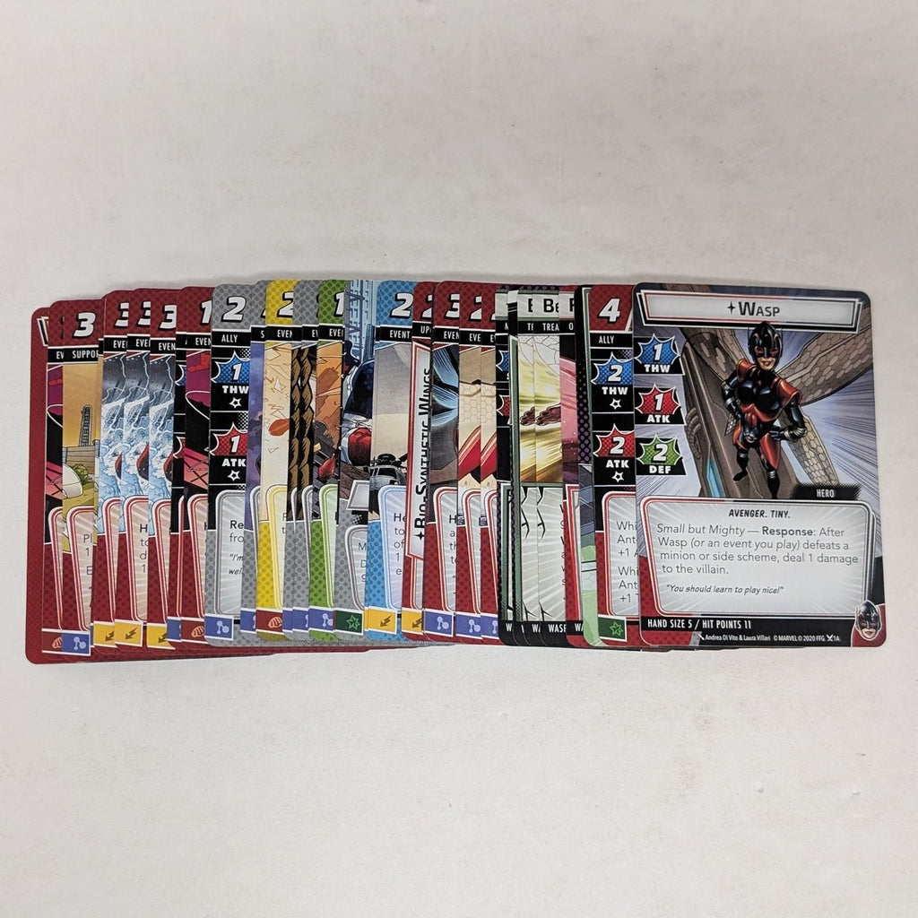 S'appuyant sur la même capacité de changement de taille qu'Ant-Man dans le pack Héros Guêpe pour Marvel Champions : Le Jeu de Cartes, Guêpe possède néanmoins ses propres stratégies, privilégiant la préparation d'une attaque parfaite et l'exécution impeccable de ses plans. Ce pack Héros contient un deck préconstruit de 40 cartes axé sur l'agression, prêt à jouer dès l'ouverture du paquet. Que vous ayez hâte de vous lancer dans l'action avec Guêpe ou d'ajouter de nouvelles cartes à vos autres héros, vous trouverez de quoi vous divertir dans cette extension.