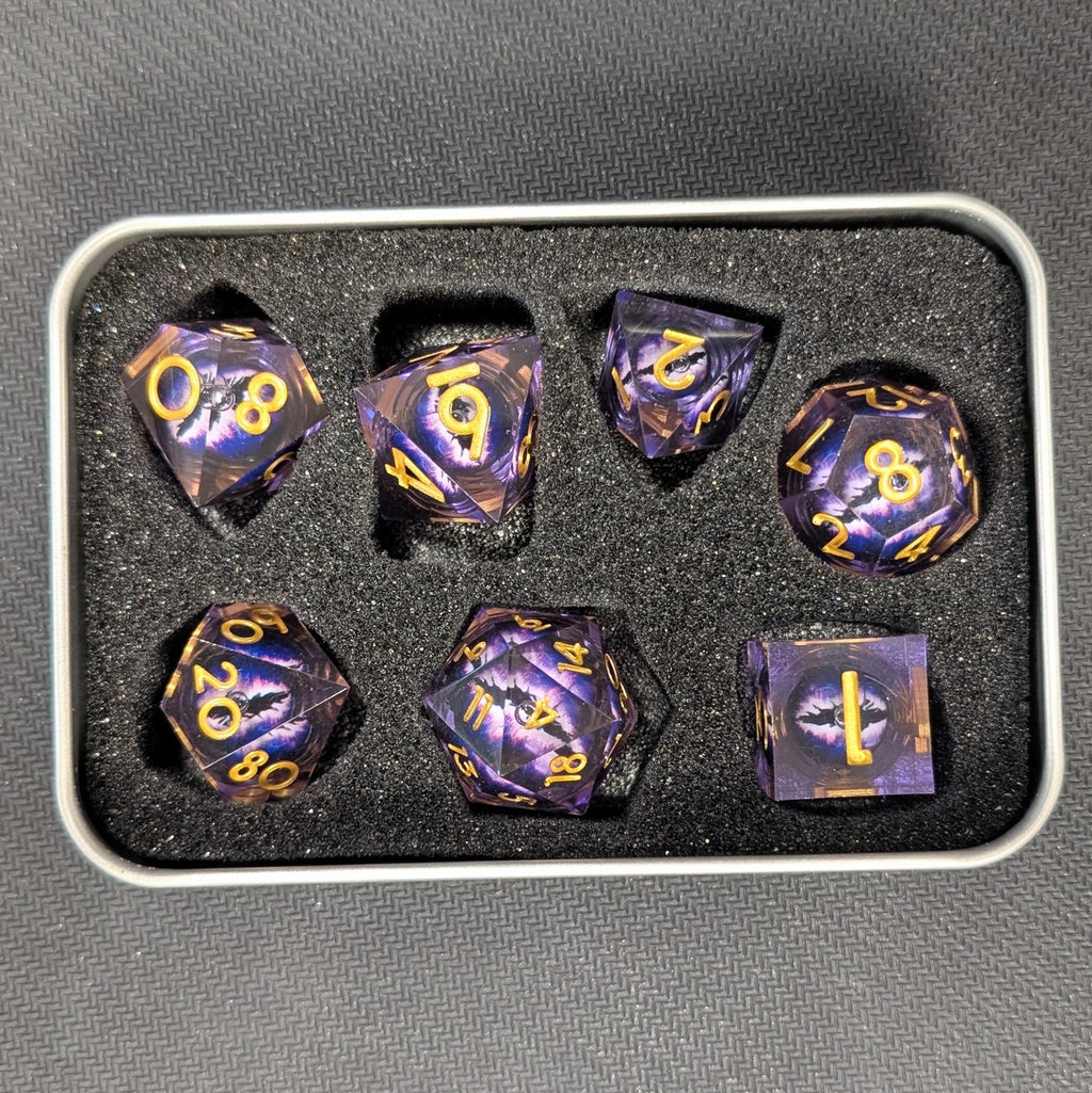 Ensemble de 7 dés à œil à noyau liquide en résine - Violet/Violet