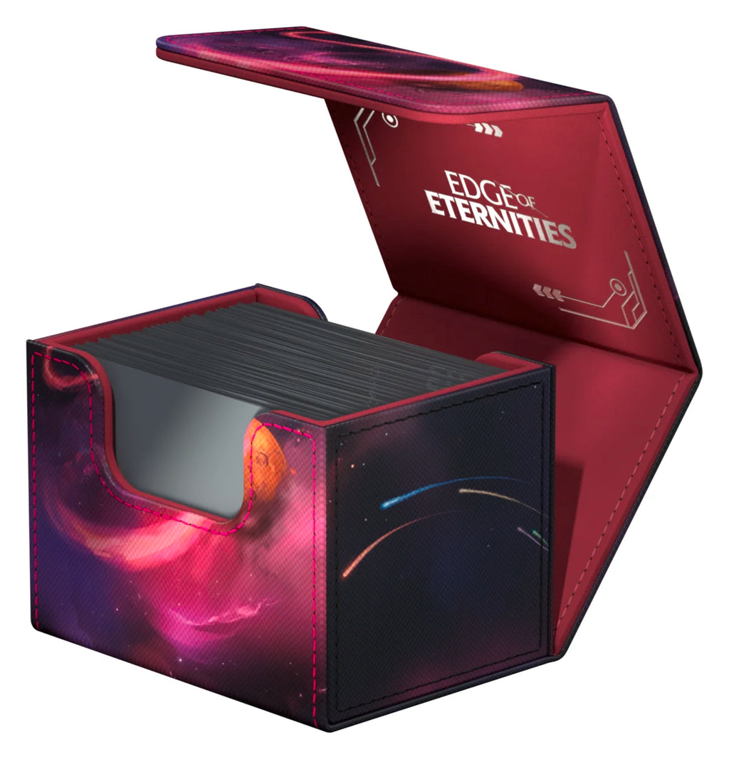 La boîte Sidewinder 100+, fabriquée en Xenoskin résistant, peut contenir jusqu'à 100 cartes sous double protection Ultimate Guard et constitue la boîte idéale pour les decks Commander/EDH. Imprimée en couleur avec des illustrations sous licence officielle de l'extension « Edge of Eternities » de Magic : The Gathering, la boîte Sidewinder d'Ultimate Guard, avec sa fermeture magnétique robuste et sa doublure intérieure en microfibre de qualité, offre un rangement sûr et fiable pour vos decks MTG et vos cartes à collectionner.