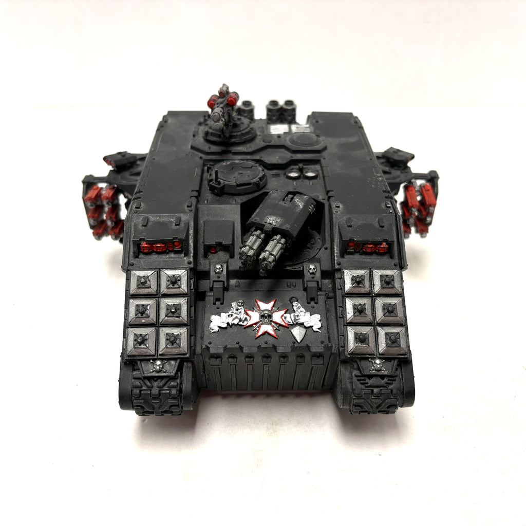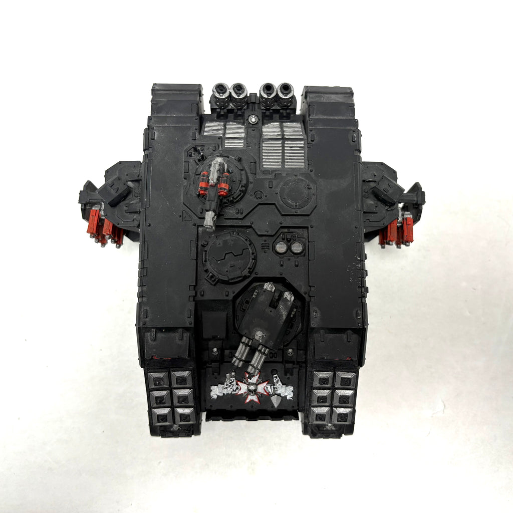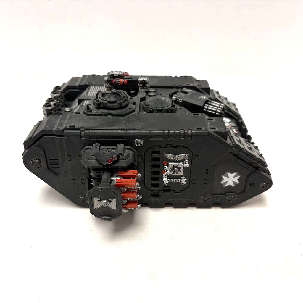 Le Land Raider est l'arme la plus destructrice de l'arsenal de l'Adeptus Astartes. Protégé par un blindage en céramite et adamantium, il est invulnérable à toutes les armes, à l'exception des plus puissantes. Son armement est tout aussi impressionnant : canons laser et bolters lourds lui permettent de délivrer un feu de soutien dévastateur, capable de décimer l'infanterie et les chars ennemis.