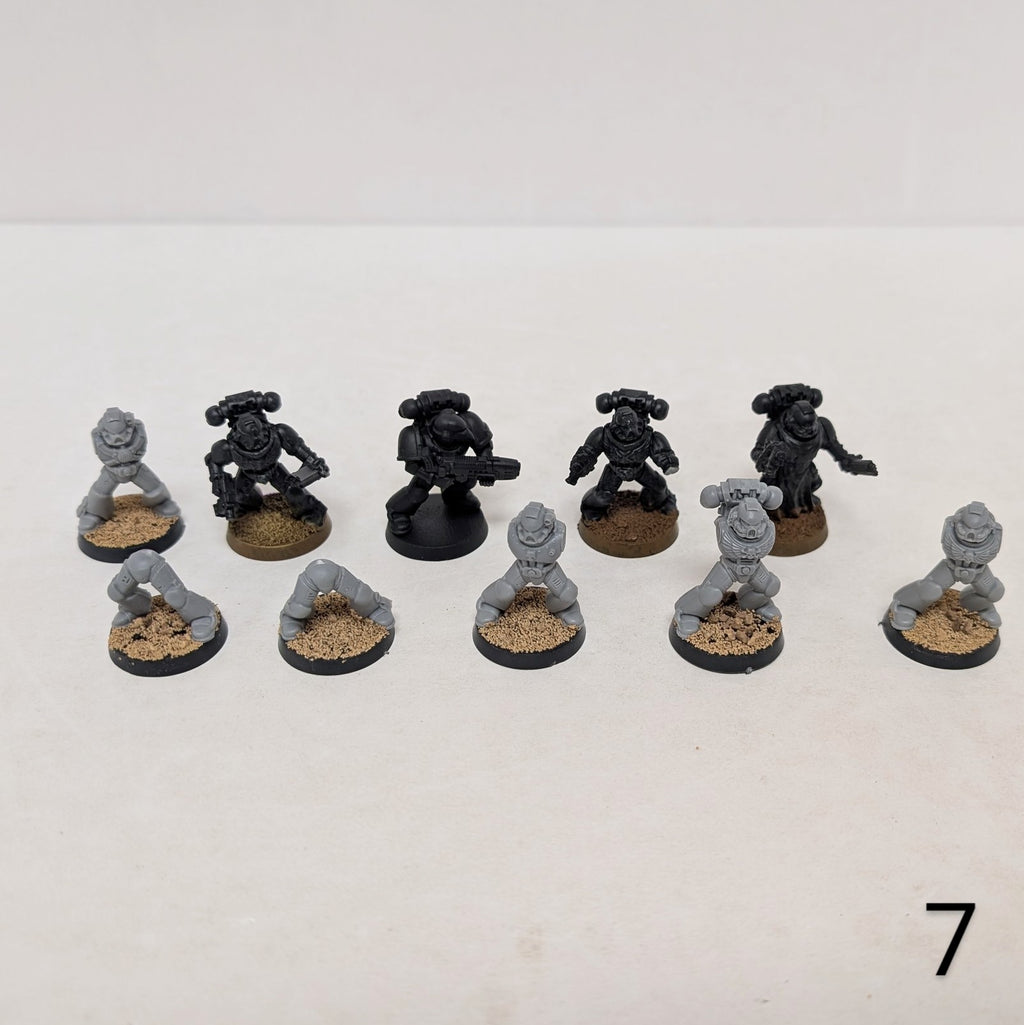 Comme si cela ne suffisait pas, vous obtenez également : une bannière arrière pour le sergent d'escouade (avec le choix de 3 hauts de bannière différents) ; un pistolet bolter dans un étui ; lunettes de visée pour les bolters ; parchemins et sceaux de pureté ; pochettes à munitions; un auspex; et 3 mains de rechange (1 pointant, 1 tenant une grenade et 1 tenant une cartouche de bolter).