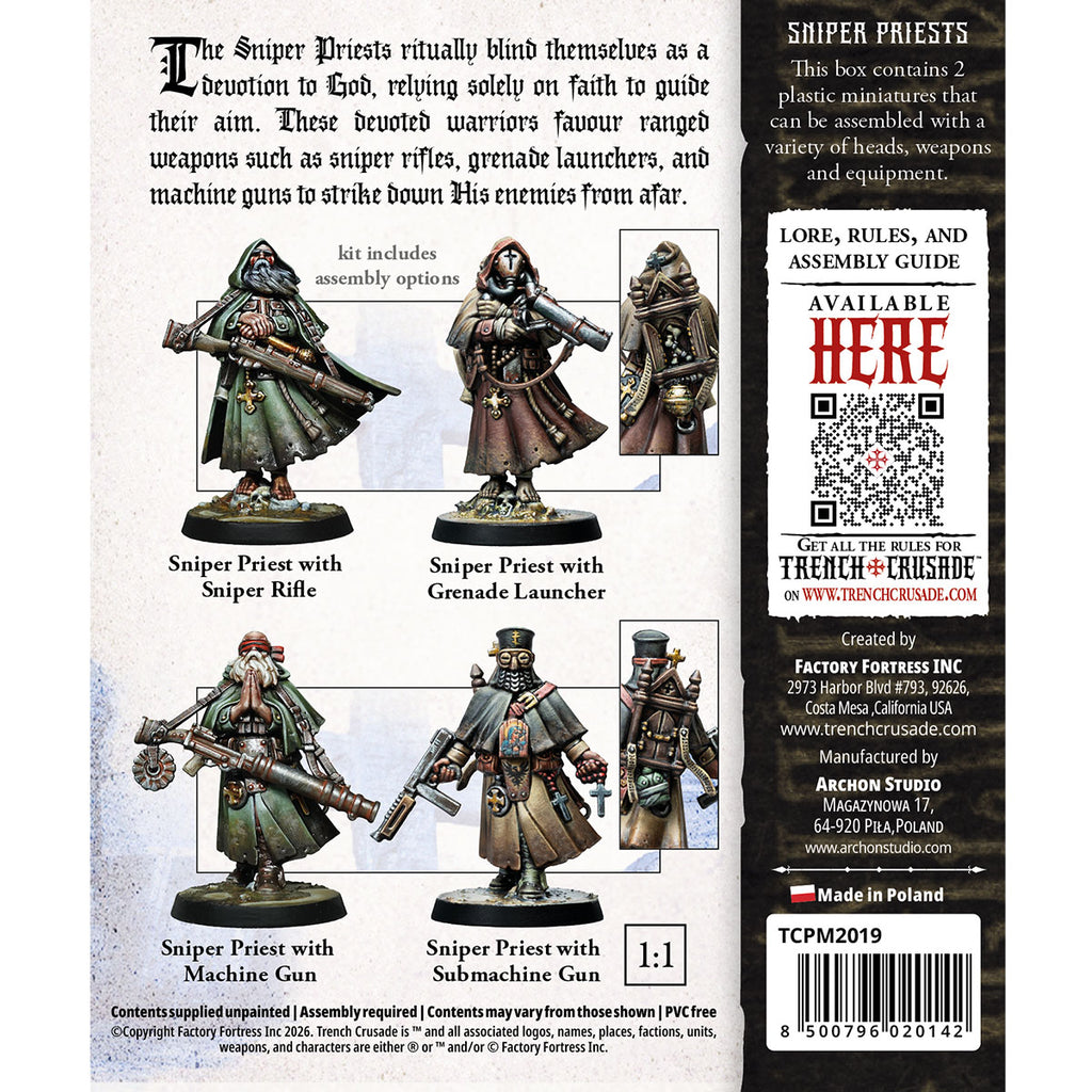 The Sniper Priests of New Antioch are the undisputed masters of long range warfare. Ritually blinding themselves to avoid any chance of doubt, a Sniper Priest aims through faith in the Lord alone, enabling unparalleled accuracy whether they be firing a sniper rifle, heavy automatic weapon, or even a grenade launcher.