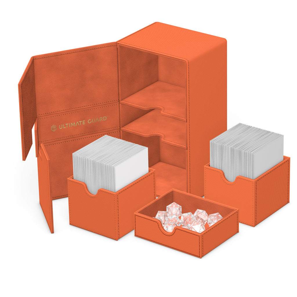 - Conçu pour 200 cartes sous double pochette ou 240 cartes sous pochette simple Ultimate Guard.