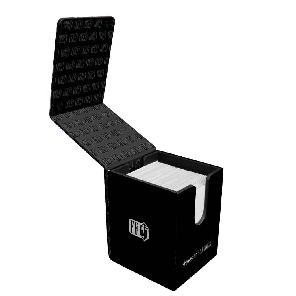 The MAGIC: THE GATHERING®—FINAL FANTASY™ Alcove® Flip Deck Box® features a vibrant, full-color leatherette finish, strong magnetic closure, and dual thumb notches for easy access to your deck. This Deck Box® holds up to 100 double-sleeved standard-size trading cards in Ultra PRO Deck Protector® sleeves.
