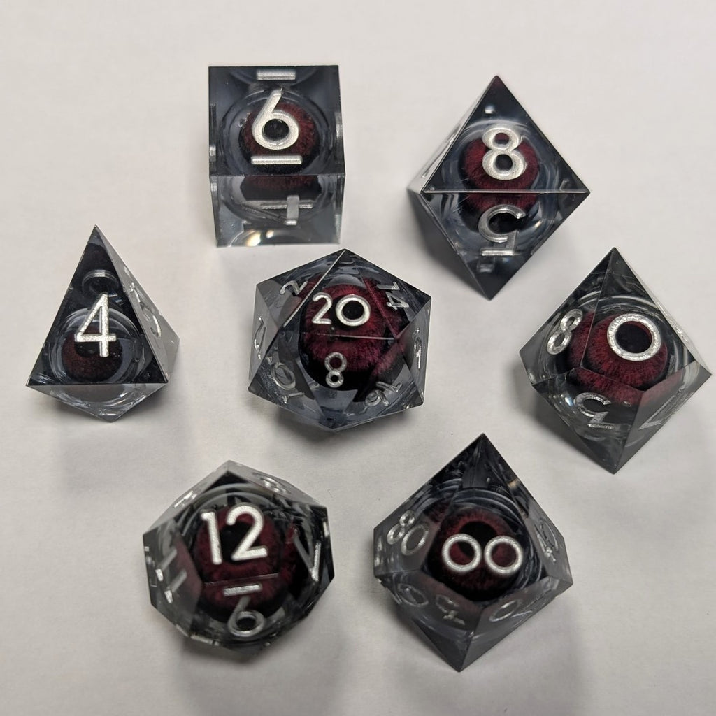 Resin Liquid Core Eye 7 Dice Set - Grey/Red