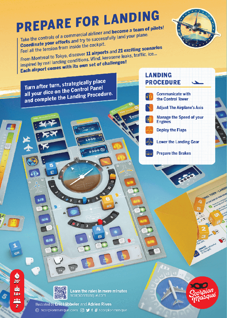 the flaps, extend the landing gear, contact the control tower to clear your path, and even have a little coffee to improve your concentration enough to change the value of your dice. From Montreal to Tokyo, each airport offers its own set of challenges. Watch out for the turbulence, it could end up being bumpy ride!