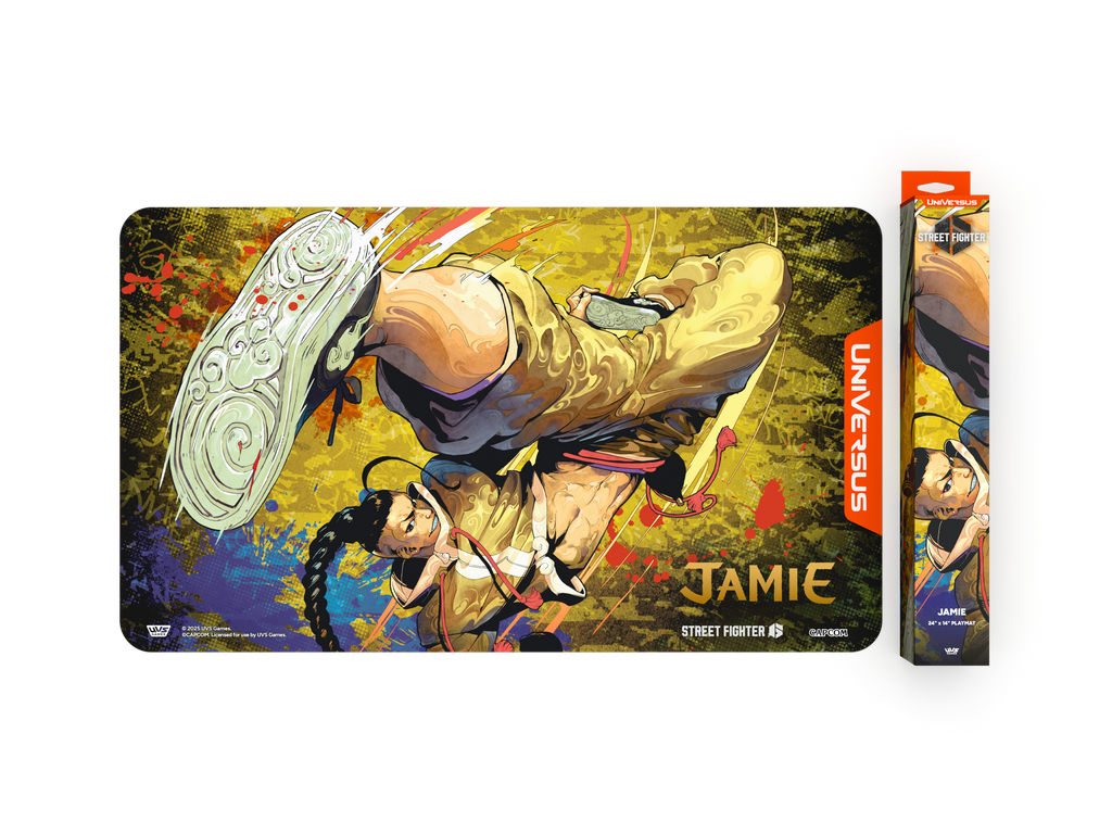 Street Fighter returns to UniVersus for an action packed 11th release! Keep your cards safe and show them off in style with this brand new playmat featuring Jamie from Street Fighter 6.